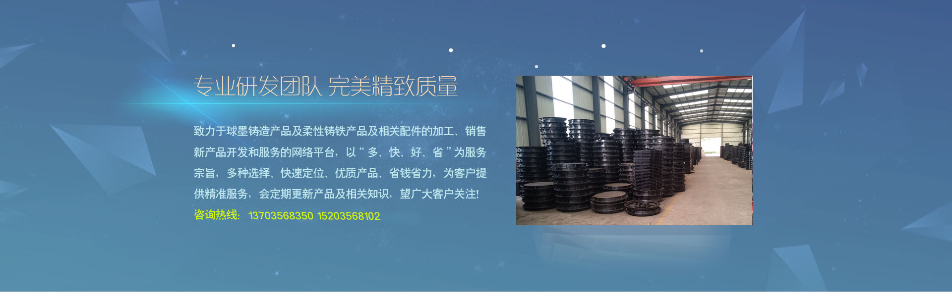 晉城市旭通鑄造股份有限公司是一家致力于球墨鑄造產(chǎn)品及柔性鑄鐵產(chǎn)品及相關(guān)配件的加工、銷售、新產(chǎn)品開發(fā)和服務(wù)的網(wǎng)絡(luò)平臺,以“多、快、好、省”為服務(wù)宗旨,多種選擇、快速定位、優(yōu)質(zhì)產(chǎn)品、省錢省力,為客戶提供精準(zhǔn)服務(wù)......